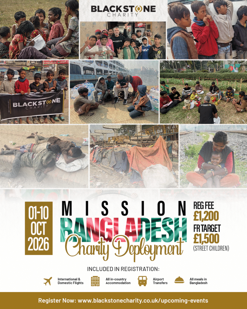 Blackstone Mission Bangladesh is all about creating meaningful change for children who need it most. You’ll be helping street children by providing food, shelter, and hope, supporting schools through educational projects and supplies, and reaching out to refugee children who have faced unimaginable hardships. Every pound raised, every moment spent volunteering, and every smile shared contribute to building brighter futures for these children.